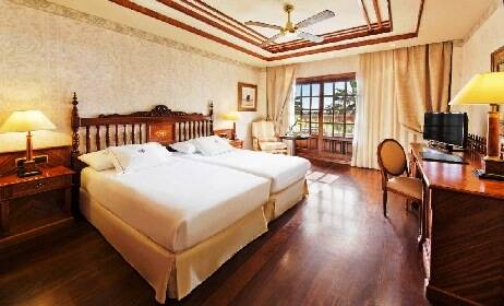 The Elba Palace is an impressive building with traditional Canarian architecture. It features tall palm trees, tiled floors and a large chandelier. You can relax in the beautiful central courtyard.