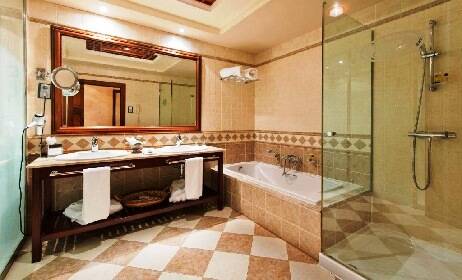The spacious rooms at Elba Palace Golf & Vital Hotel - Adults Only have free Wi-Fi, air conditioning and a private balcony. They are also equipped with satellite TV, a minibar, a safe, coffee and tea making facilities and a pillow menu. The rooms have a large bathroom with a bath, separate shower, hairdryer and bathrobes.